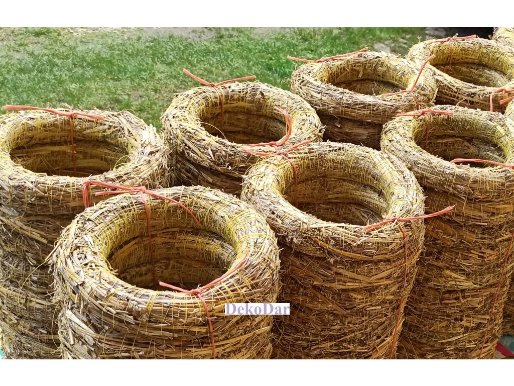Slaměné věnce vyrábíme na vlastním zařízení, proto jsme schopni rychle reagovat na potřeby zákazníků. Slaměné věnečky vážeme silonovým vlascem, který jim přidává neobyčejnou pevnost.